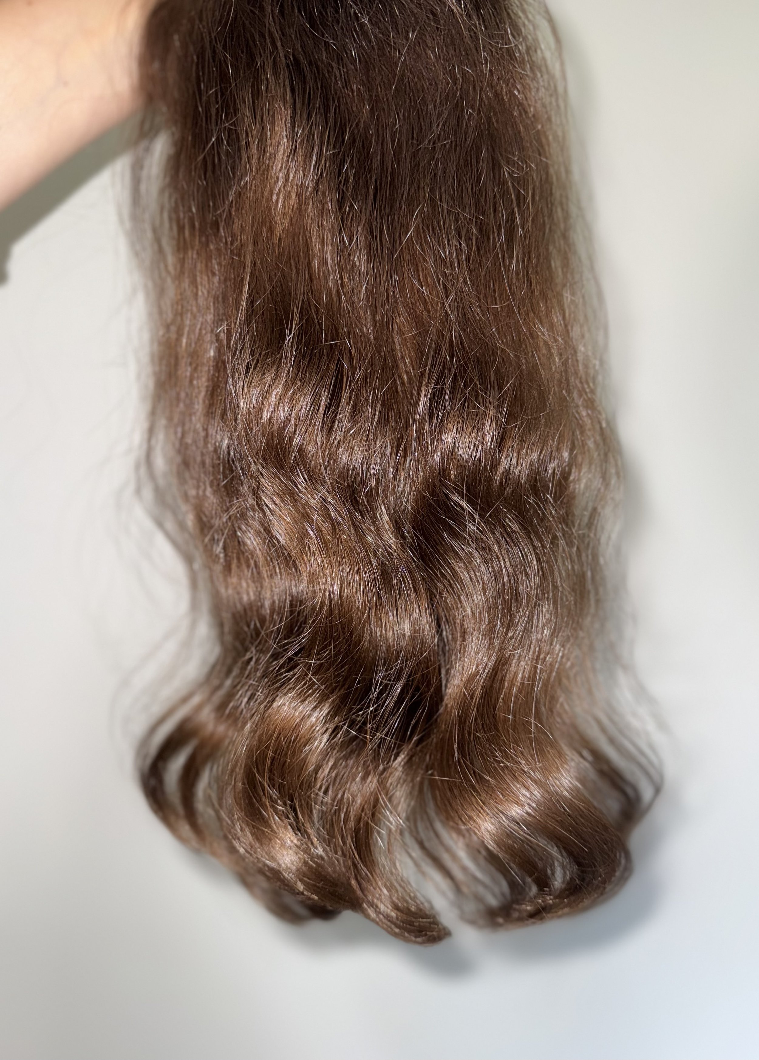 The quality of the keratin is especially important with Virgin Slavic hair, as this hair type is exceptionally soft, pure, and valuable. Italian keratin ensures the bond remains strong while preserving the natural movement and luxurious texture of the hair.